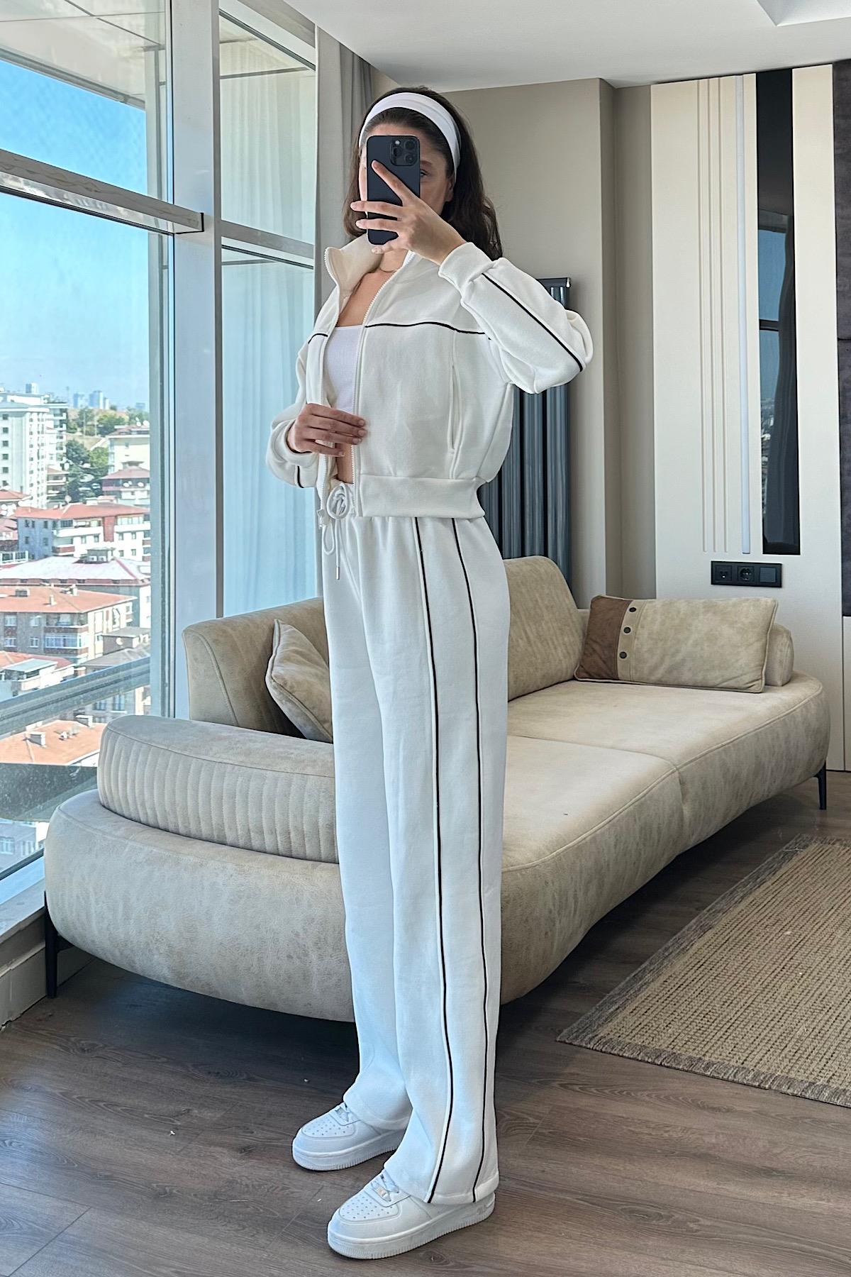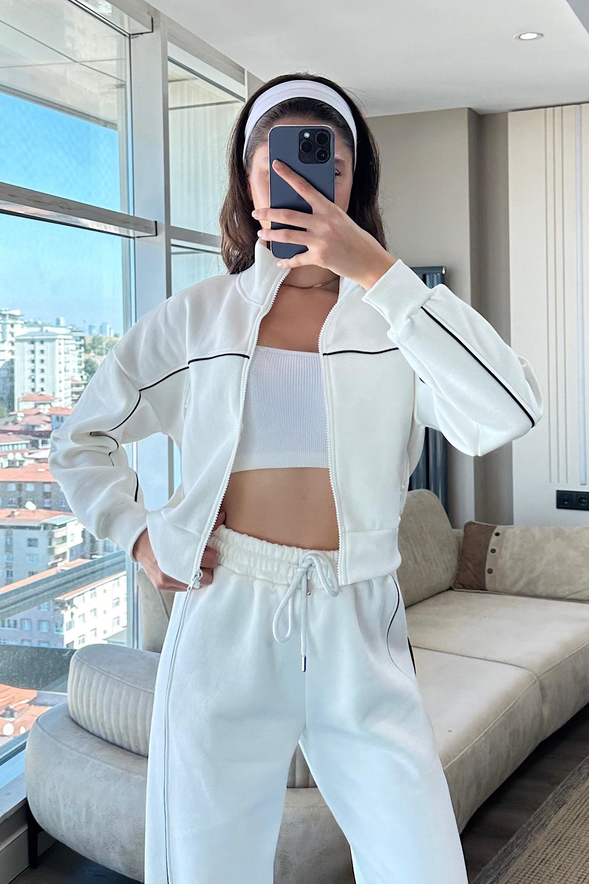 AREL ŞERİTLİ HIRKA TAKIM-Beyaz