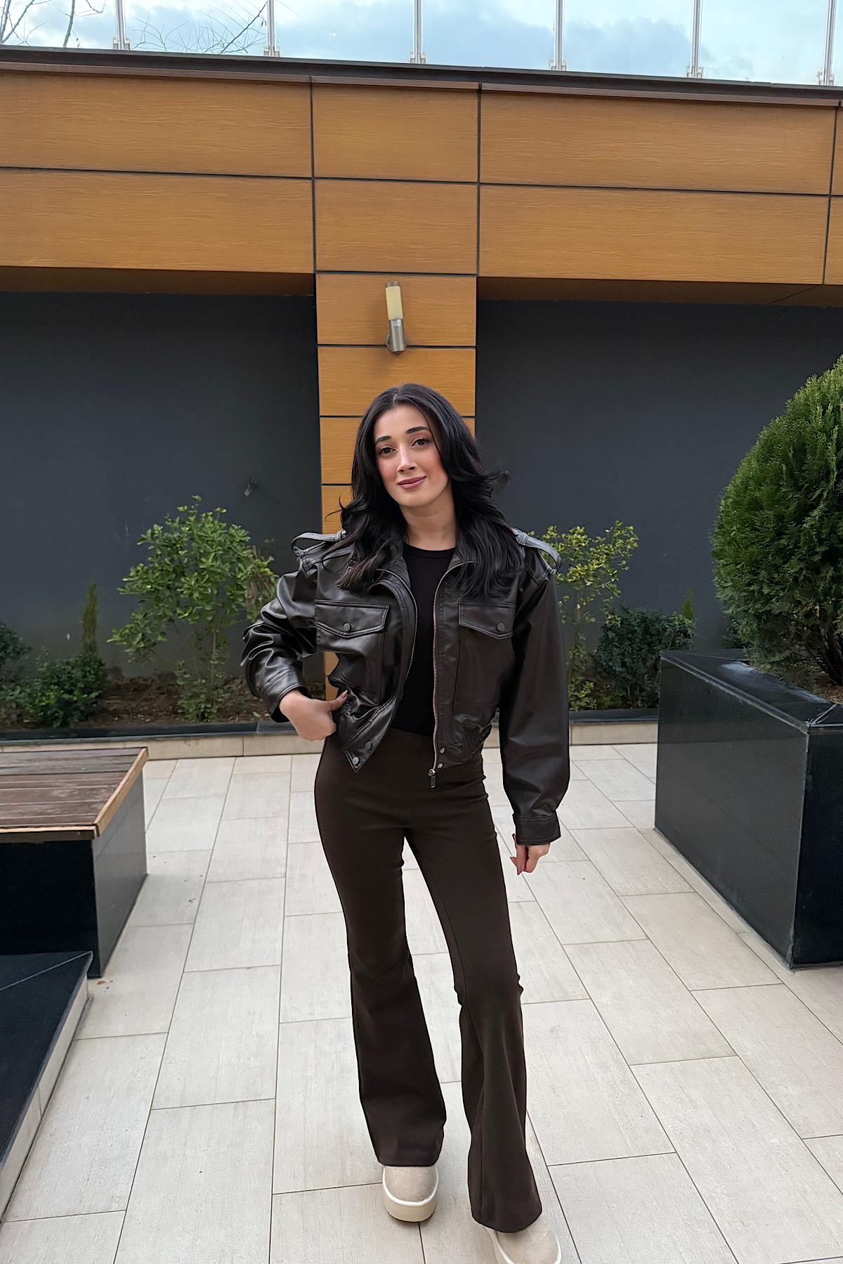 BELİ LASTİKLİ İSPANYOL PAÇA PANTOLON-Kahve