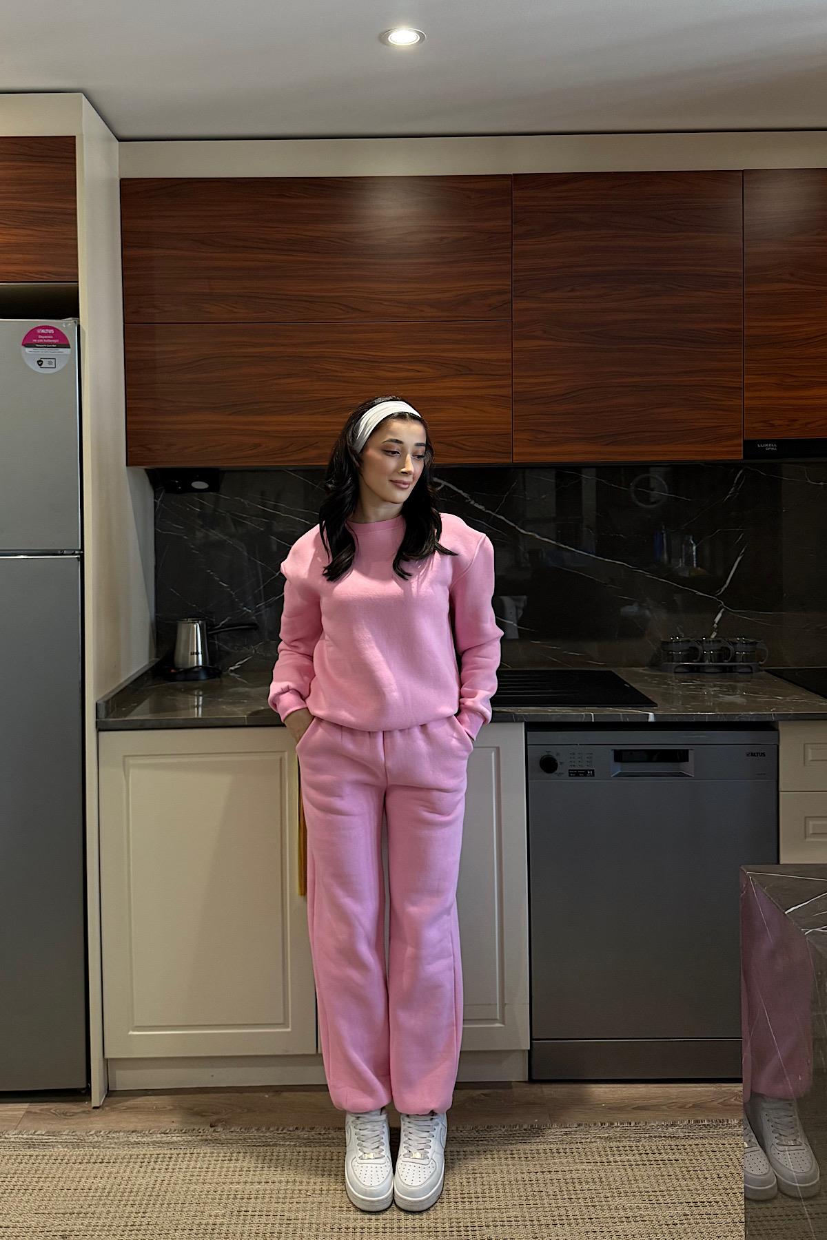 COZY ÜÇ İPLİK ŞARDONLU TAKIM-Pembe