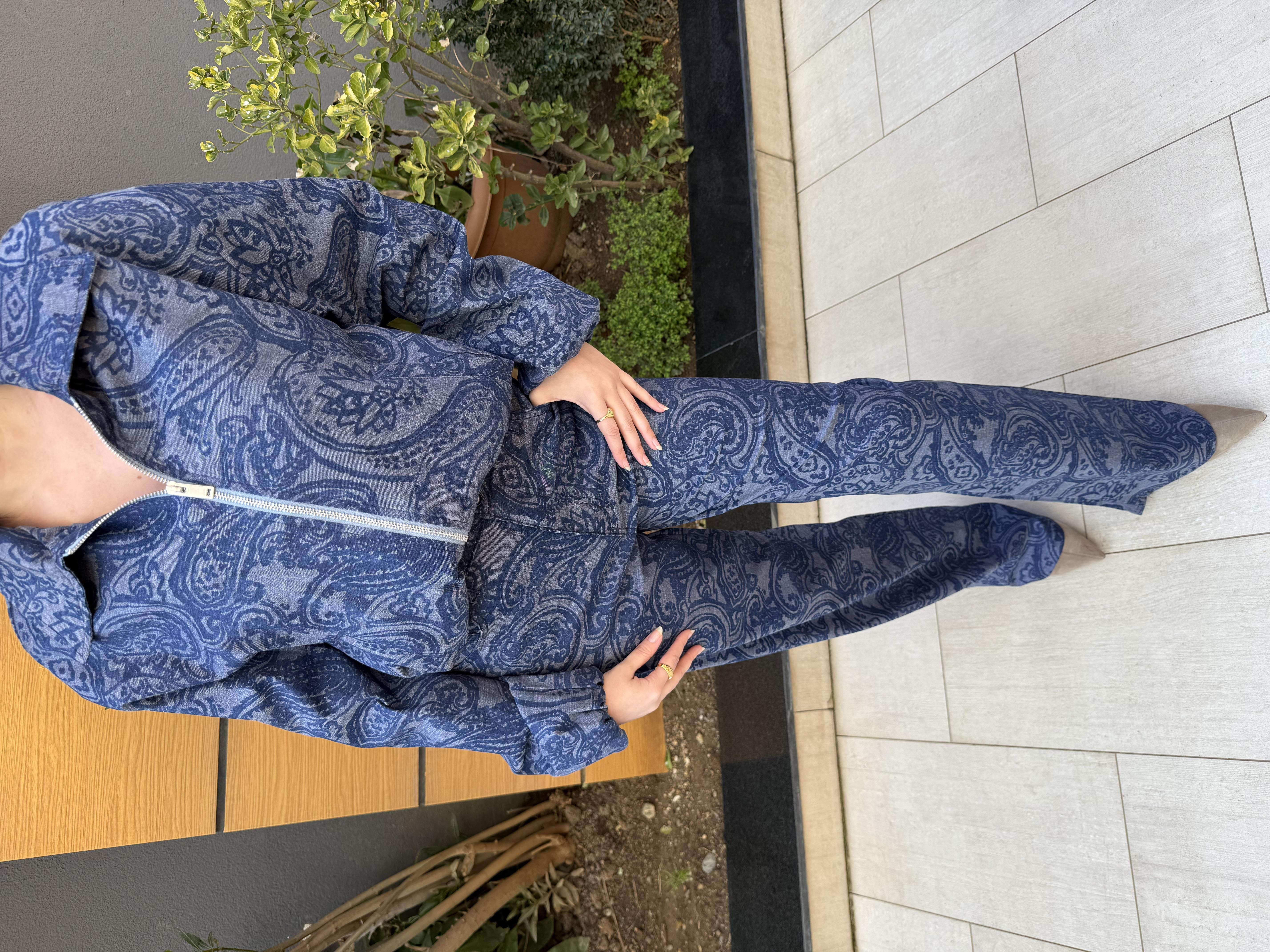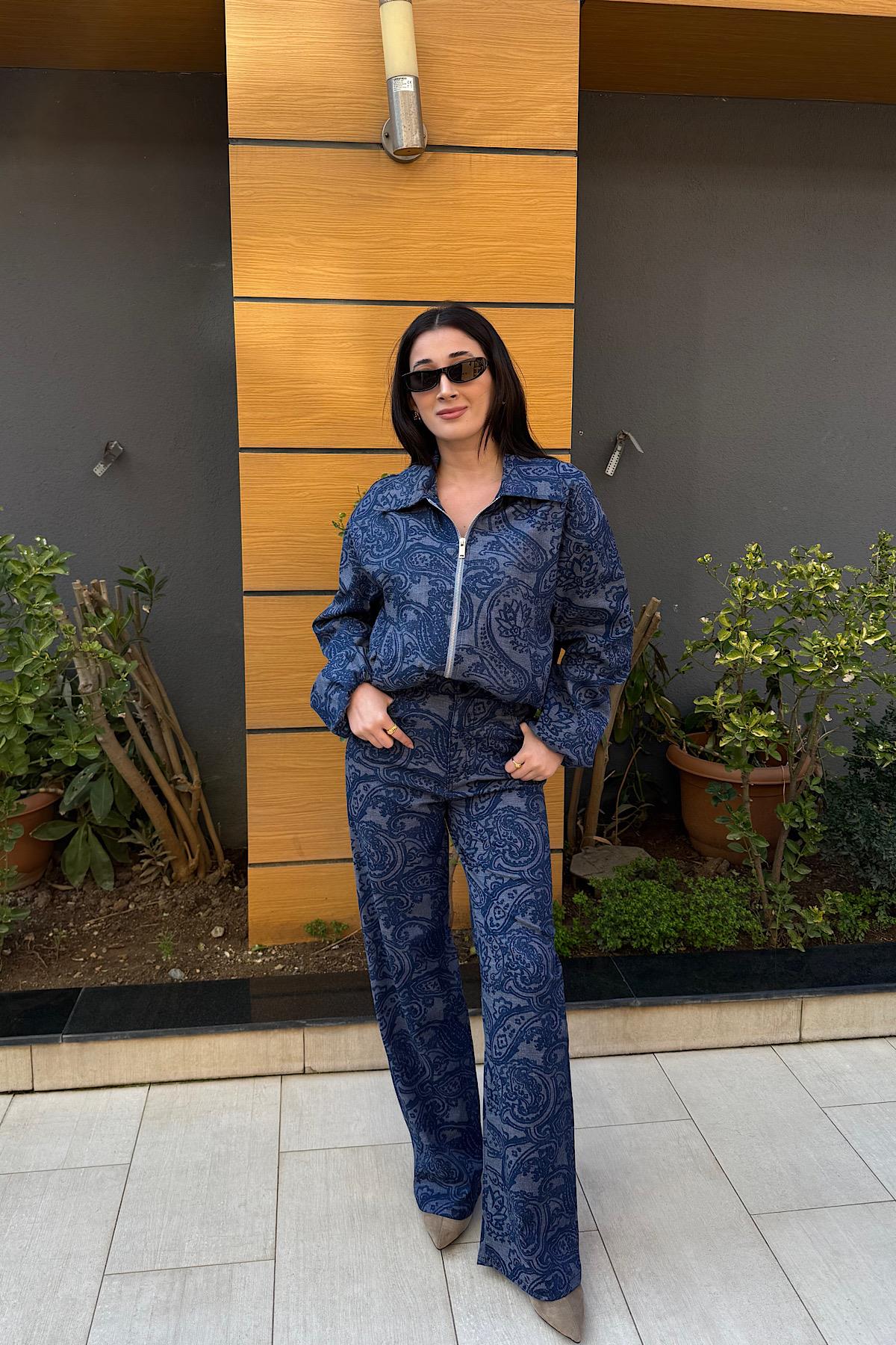 DESENLİ DENİM TAKIM-Mavi
