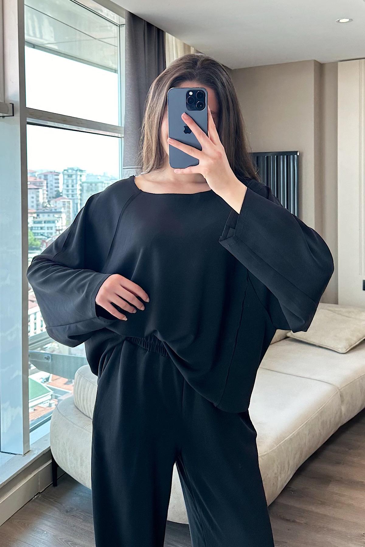 DÖKÜMLÜ BLUZ MODAL TAKIM-siyah