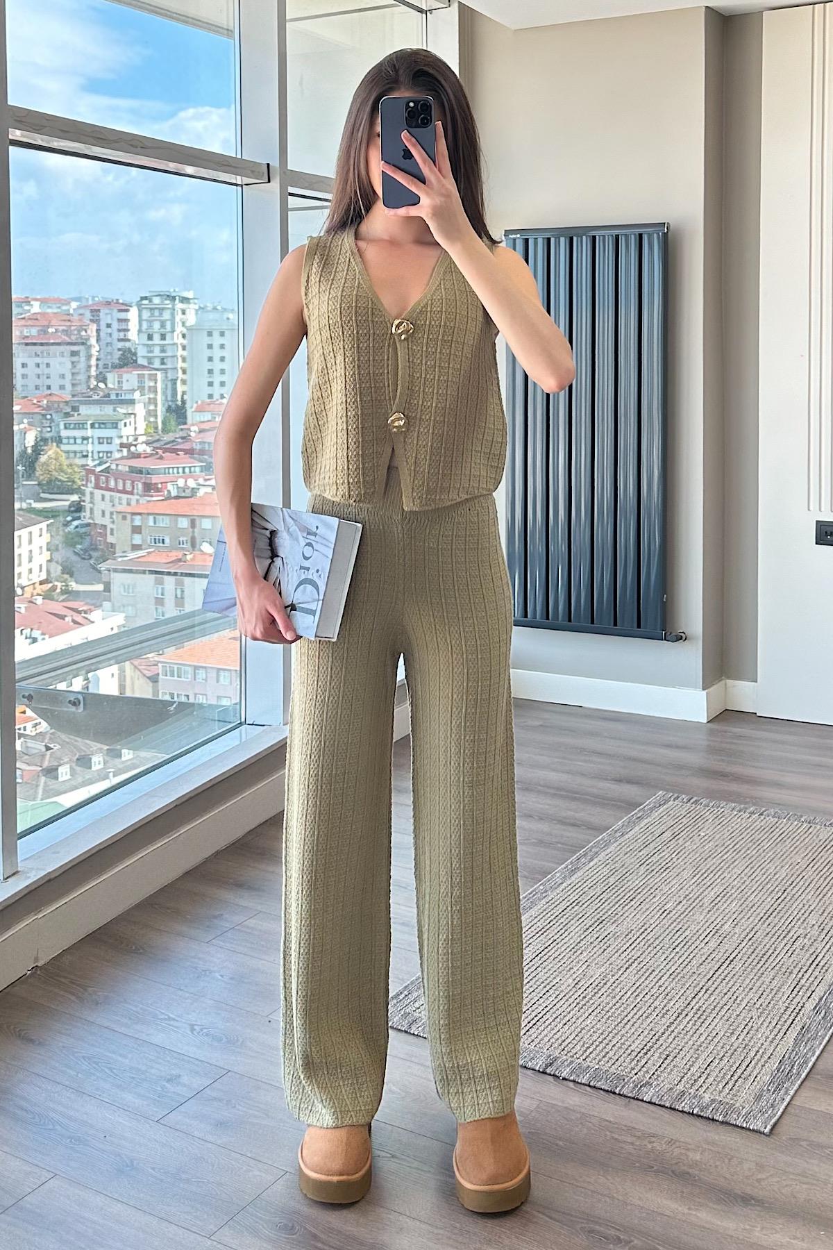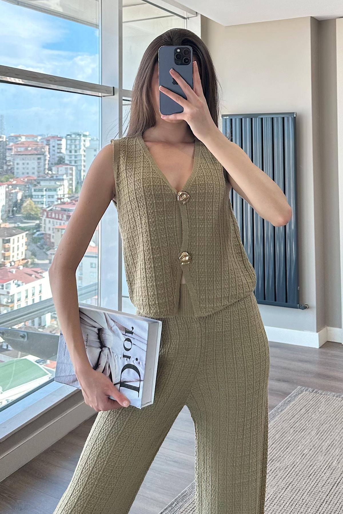 GOLD DÜĞMELİ YELEK TAKIM-Yeşil