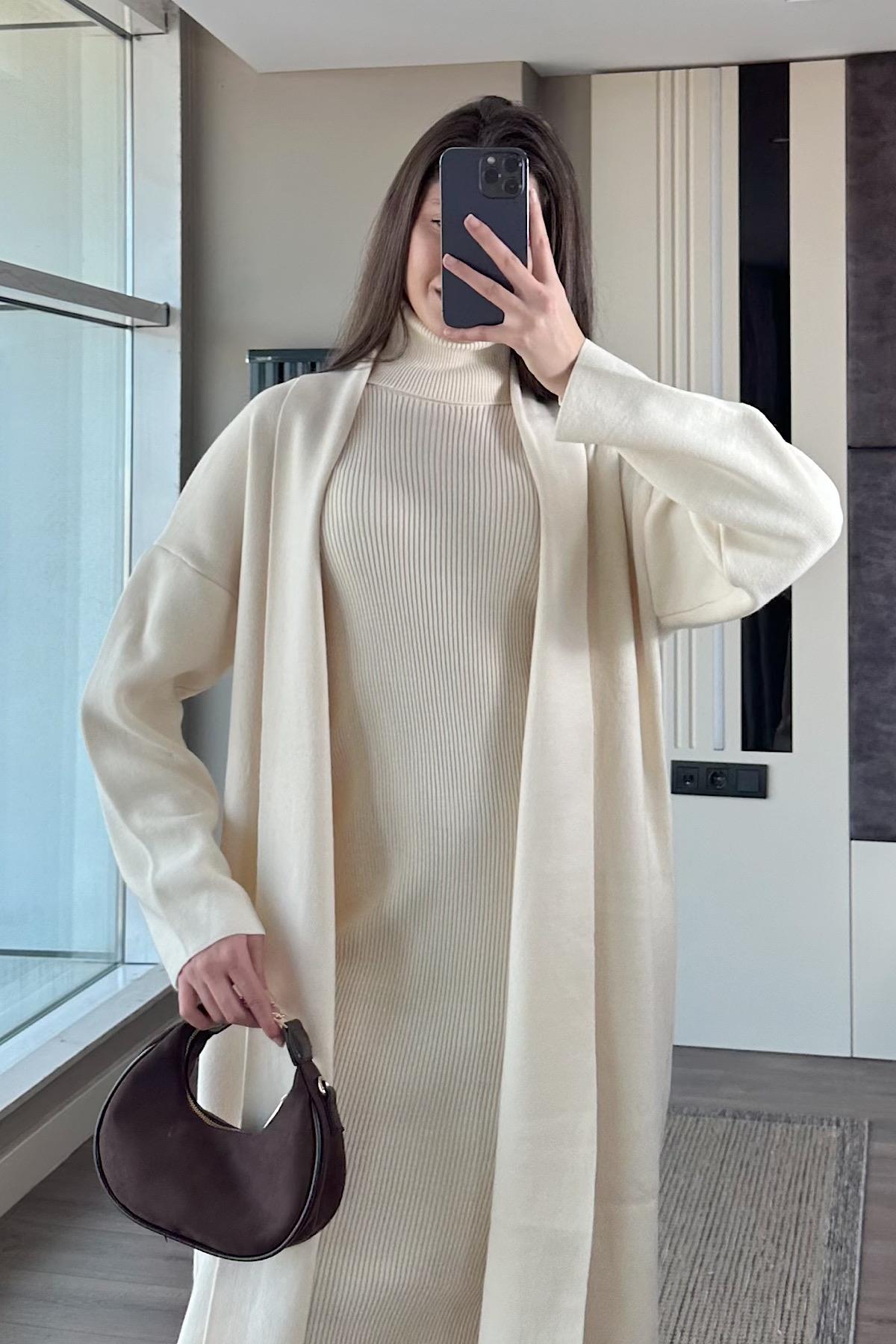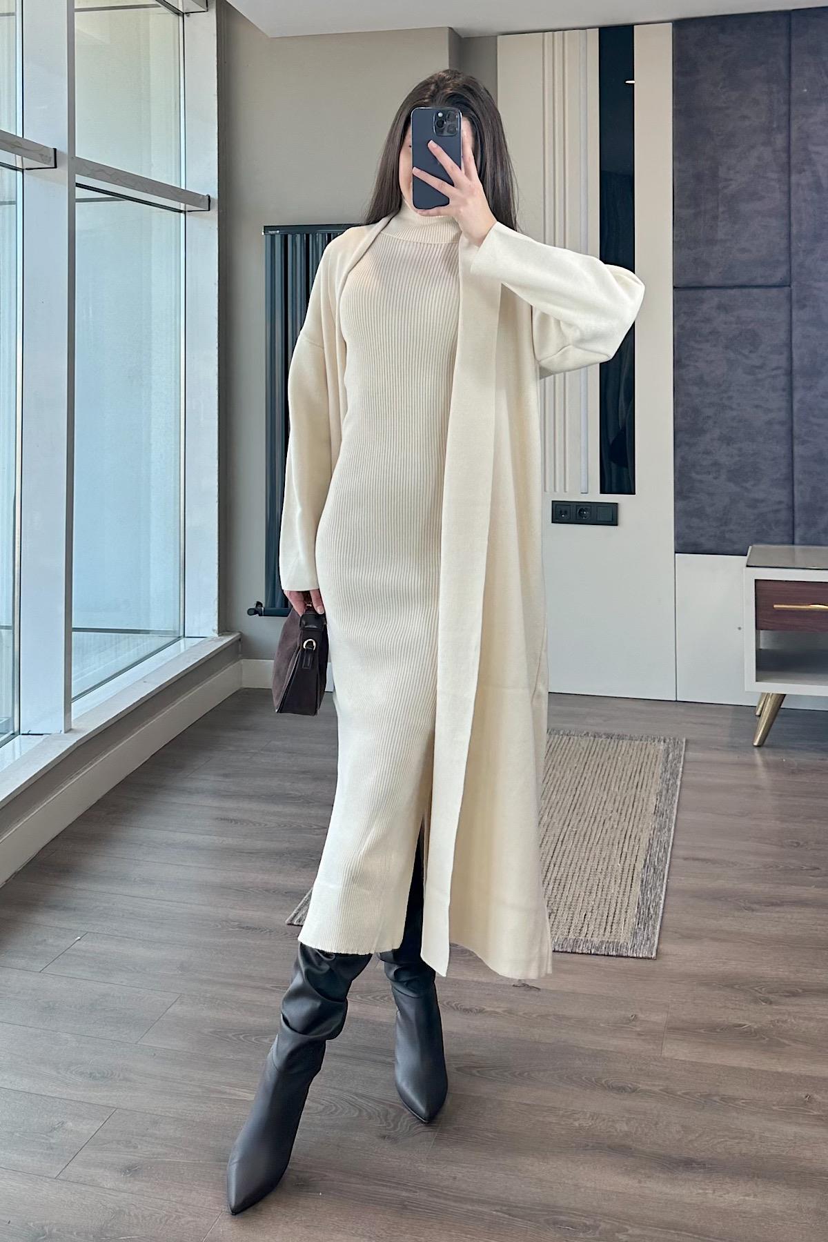 HIRKALI TRİKO ELBİSE-ekru