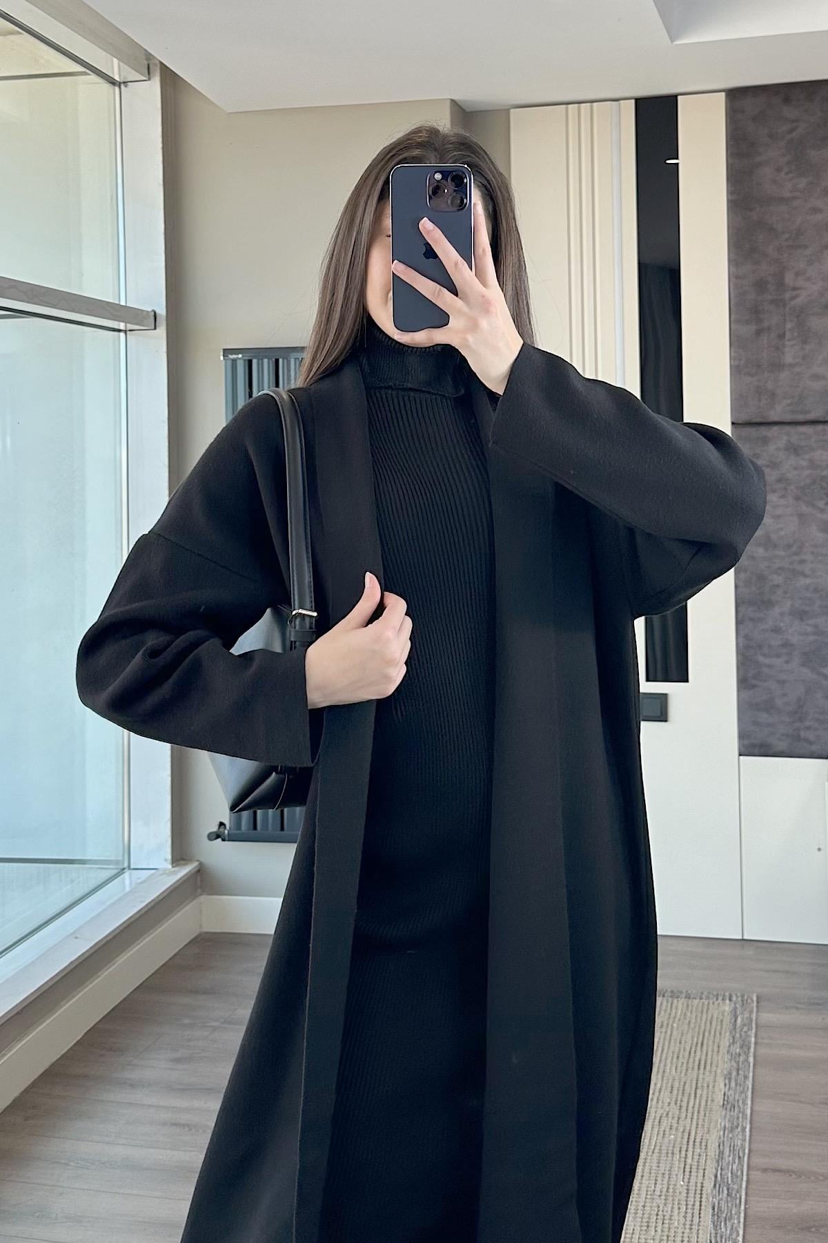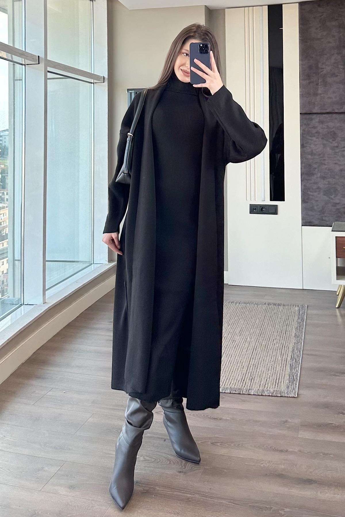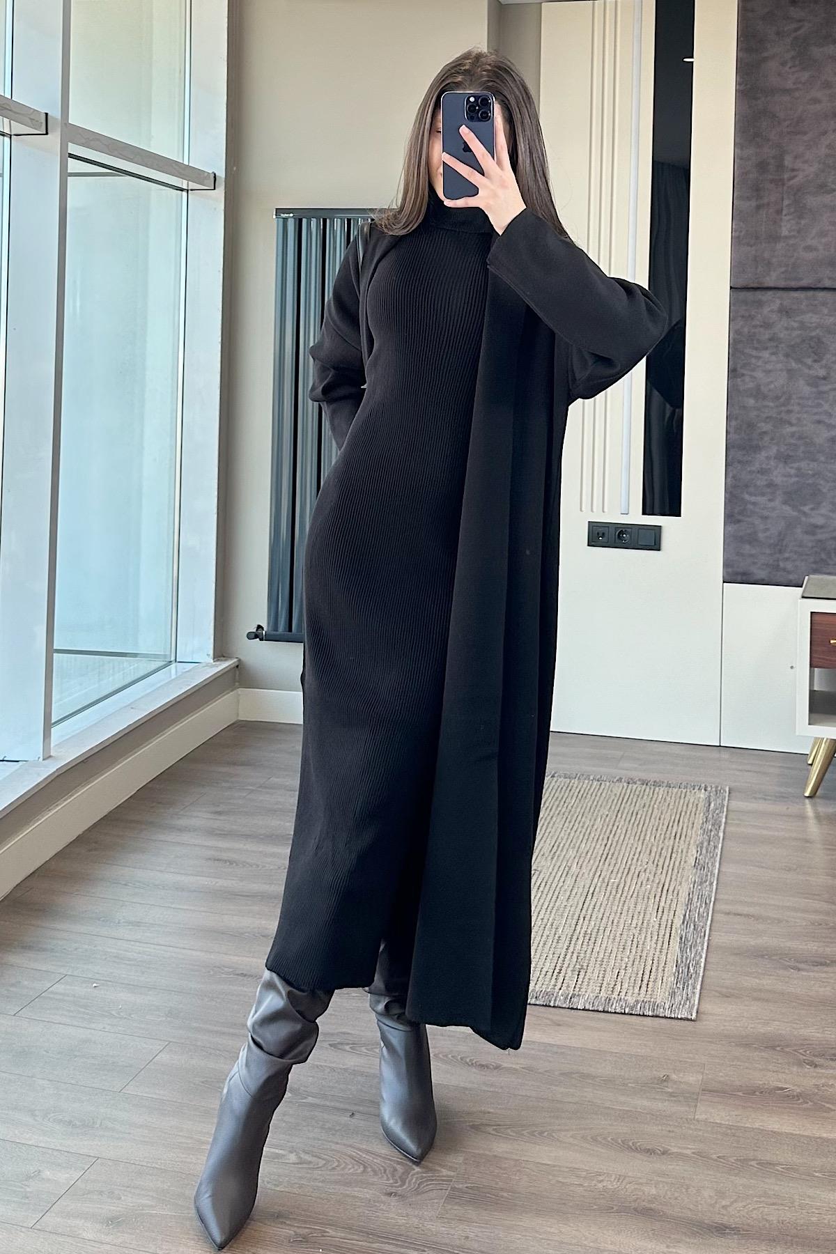 HIRKALI TRİKO ELBİSE-Siyah