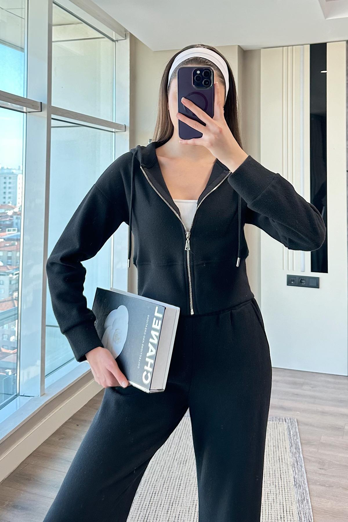 KAPŞONLU İKİLİ TAKIM-Siyah
