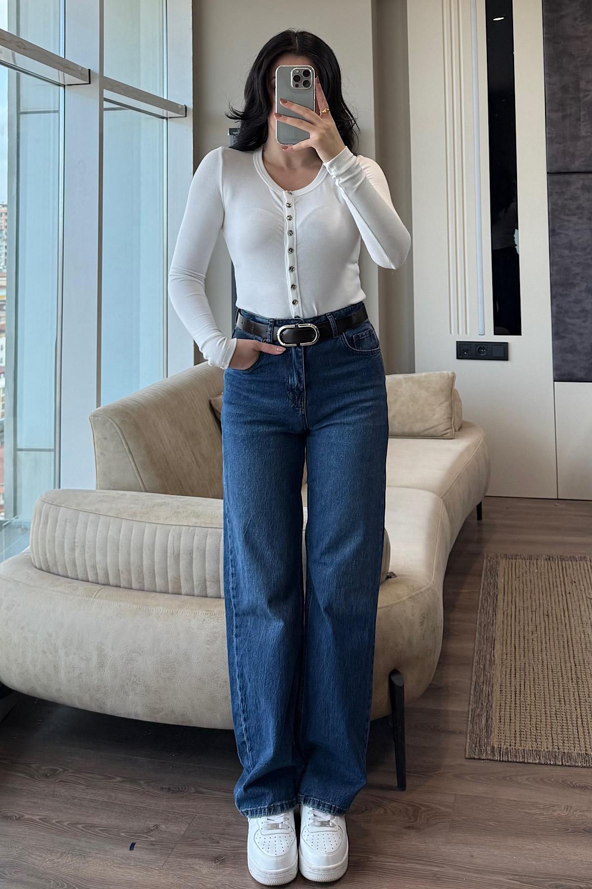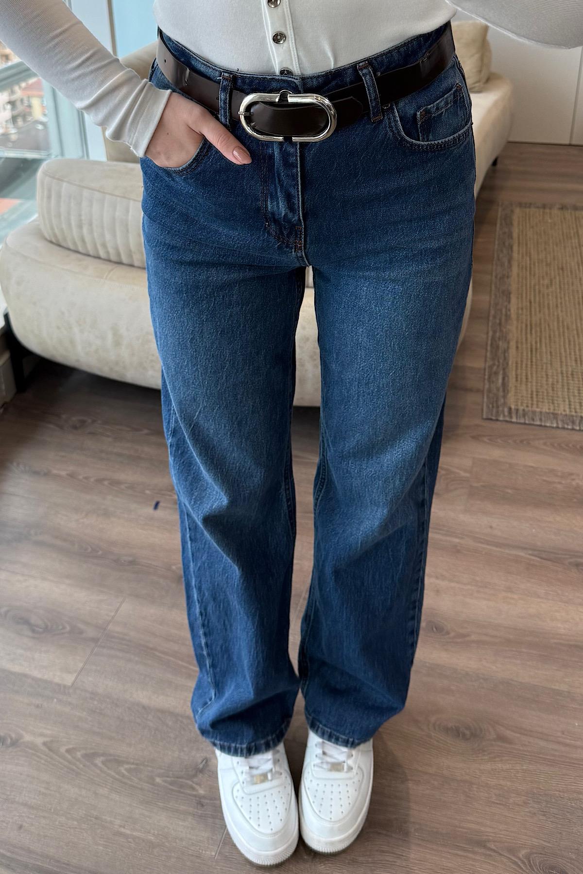 KEMERLİ PALAZZO PANTOLON-Mavi