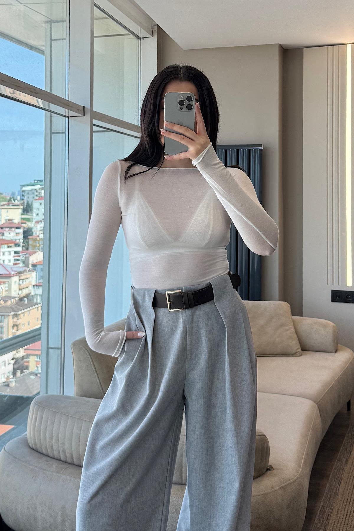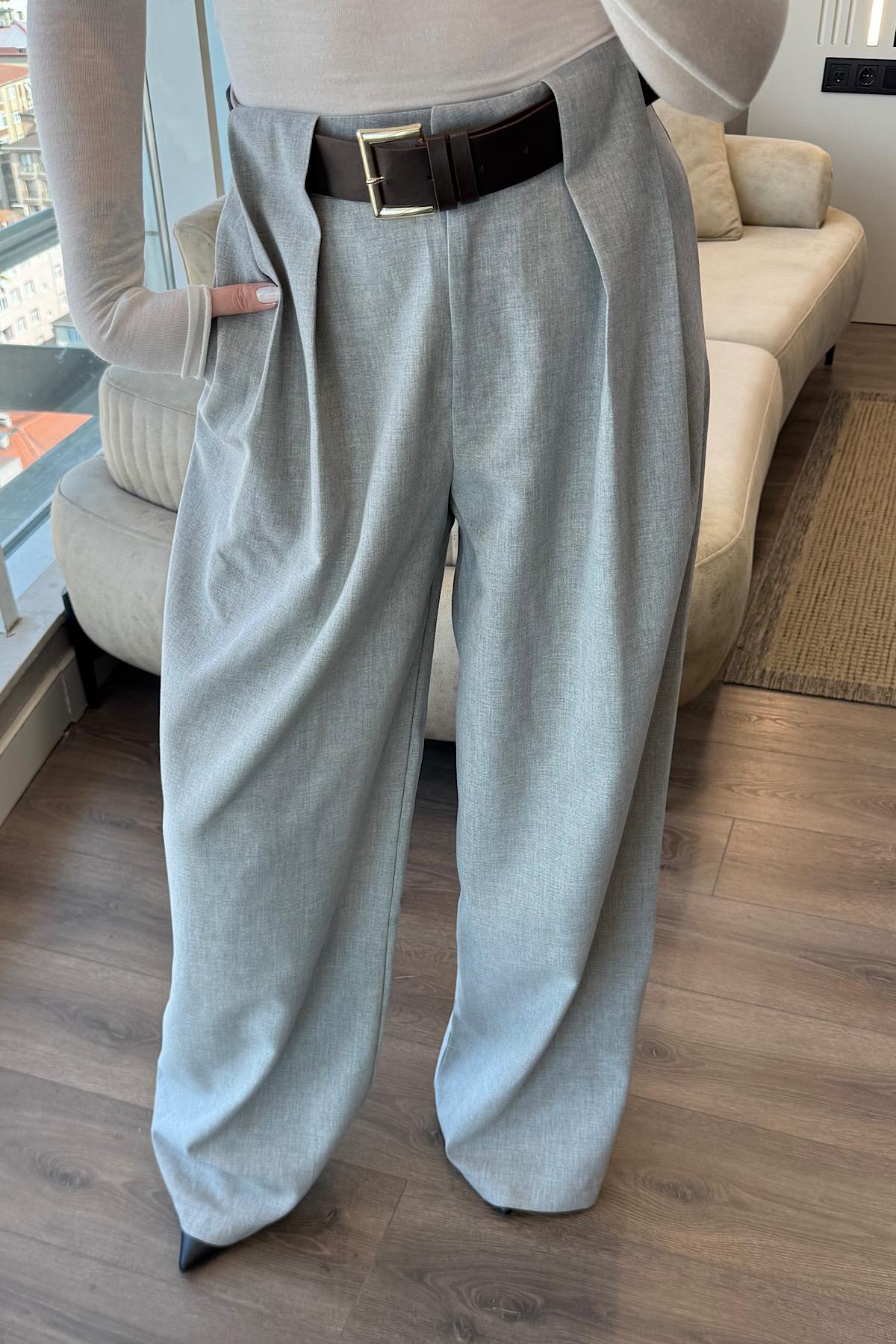 KEMERLİ PALAZZO PANTOLON-Gri