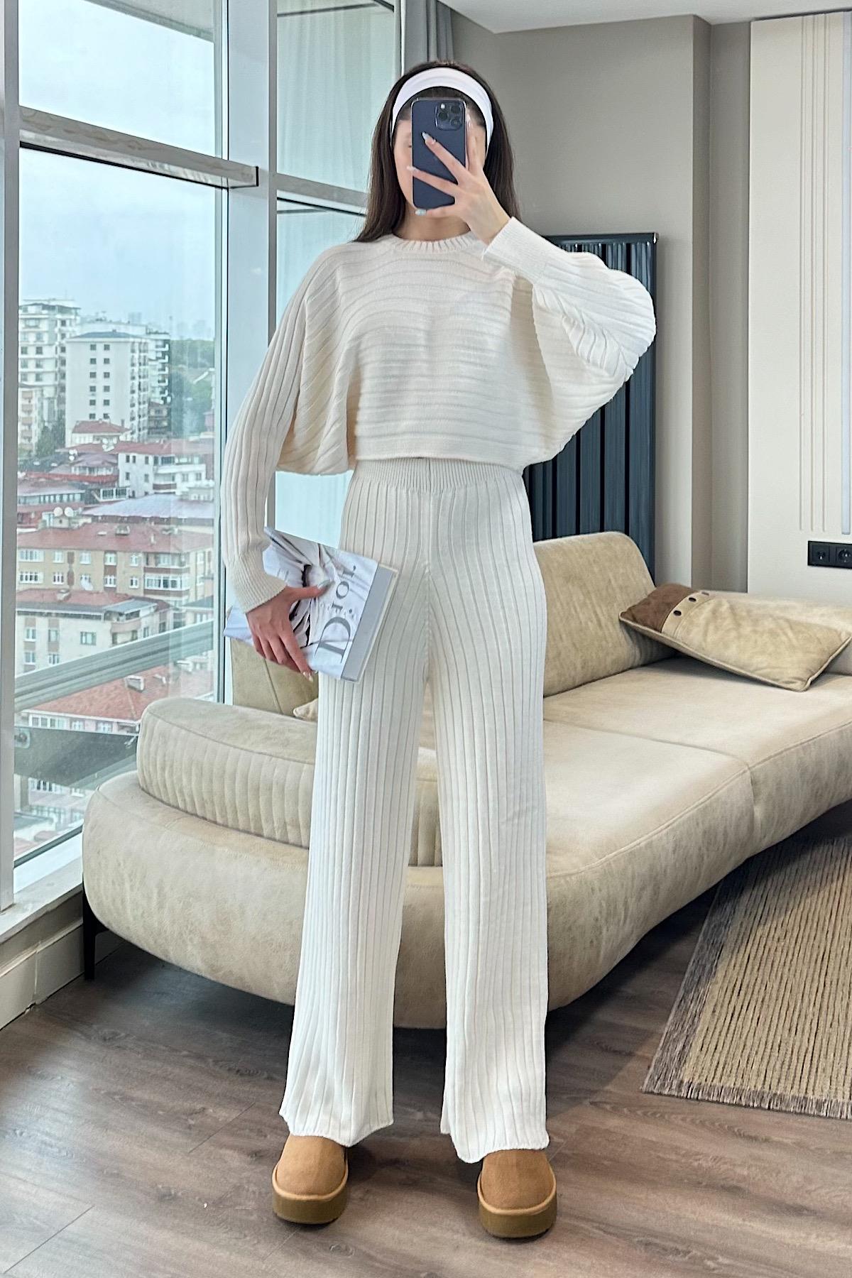 MİRA YARASA KOL TRİKO TAKIM-Ekru