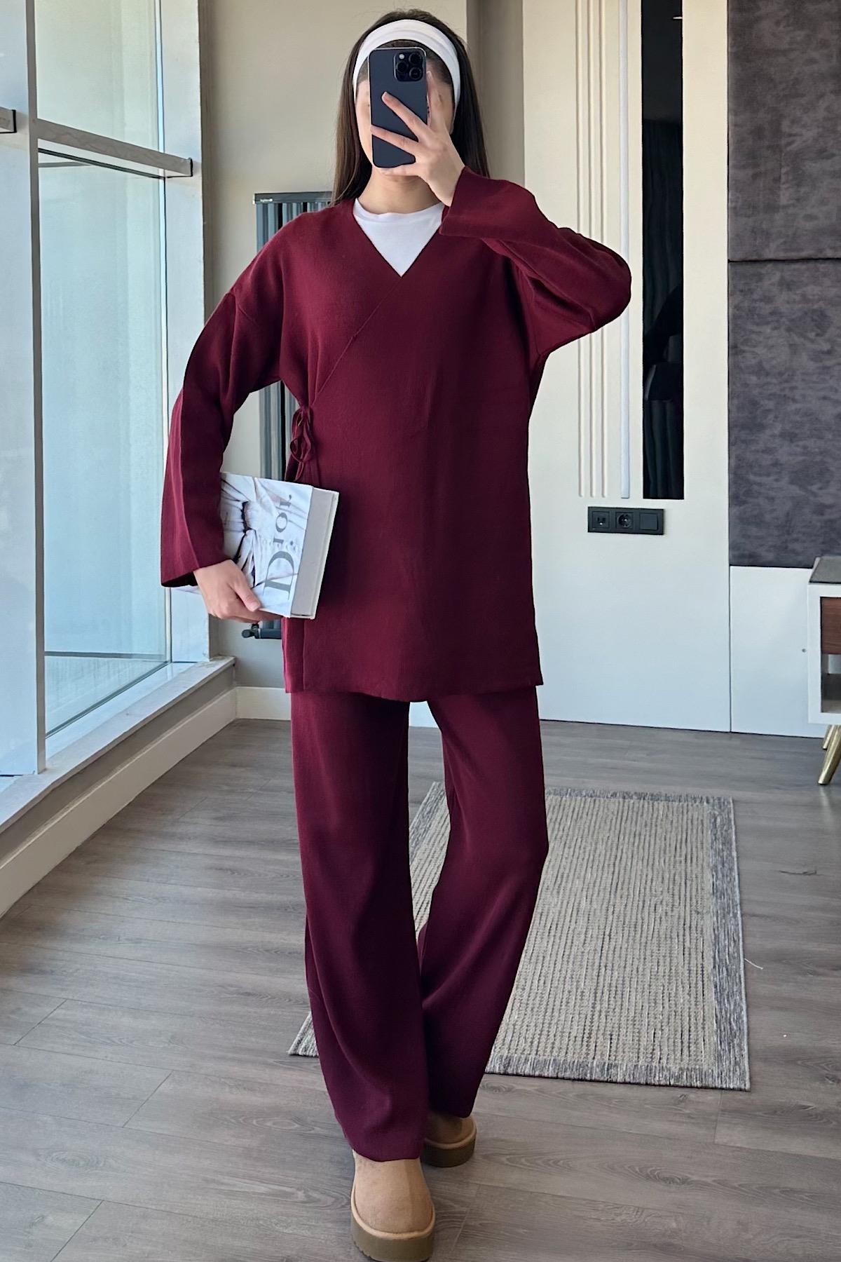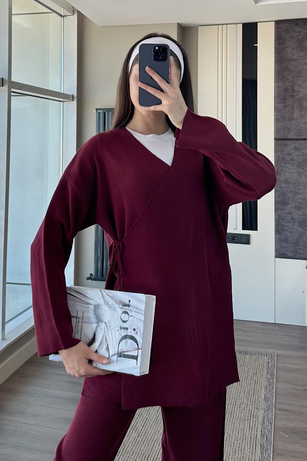 MİREL BAĞLAMALI KİMONO TAKIM-Bordo