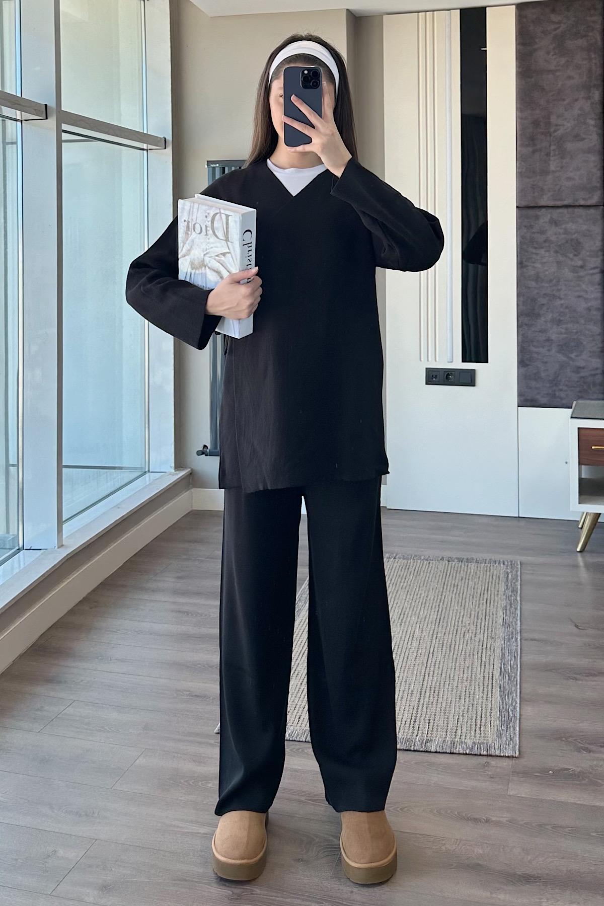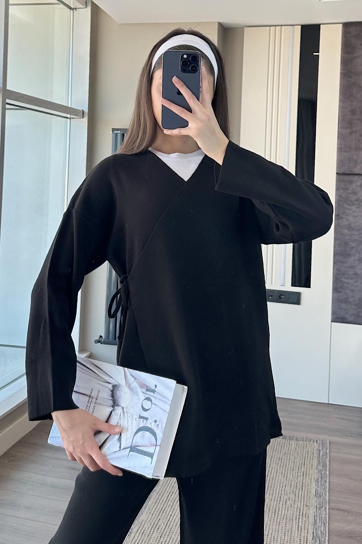 MİREL BAĞLAMALI TRİKO TAKIM-siyah