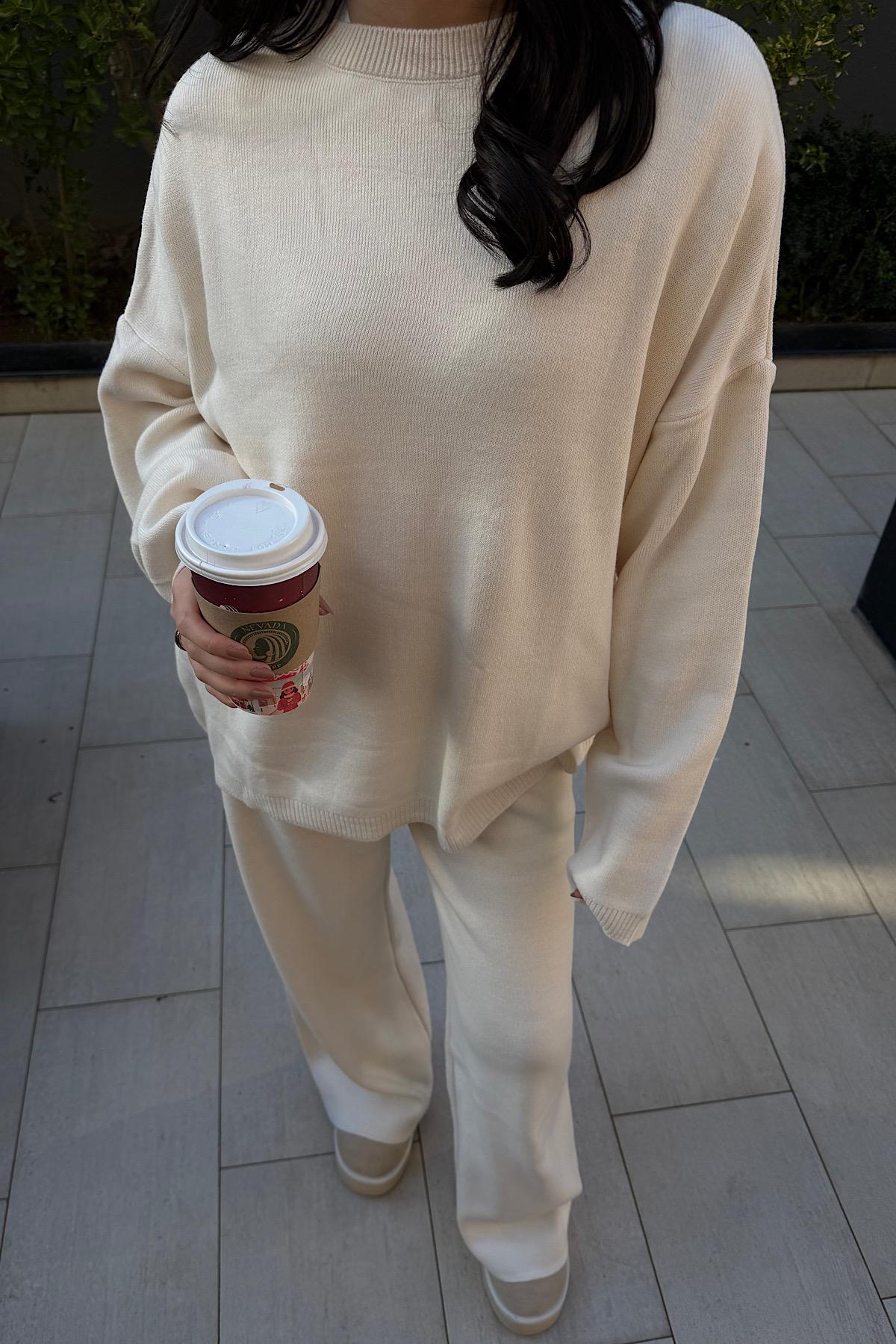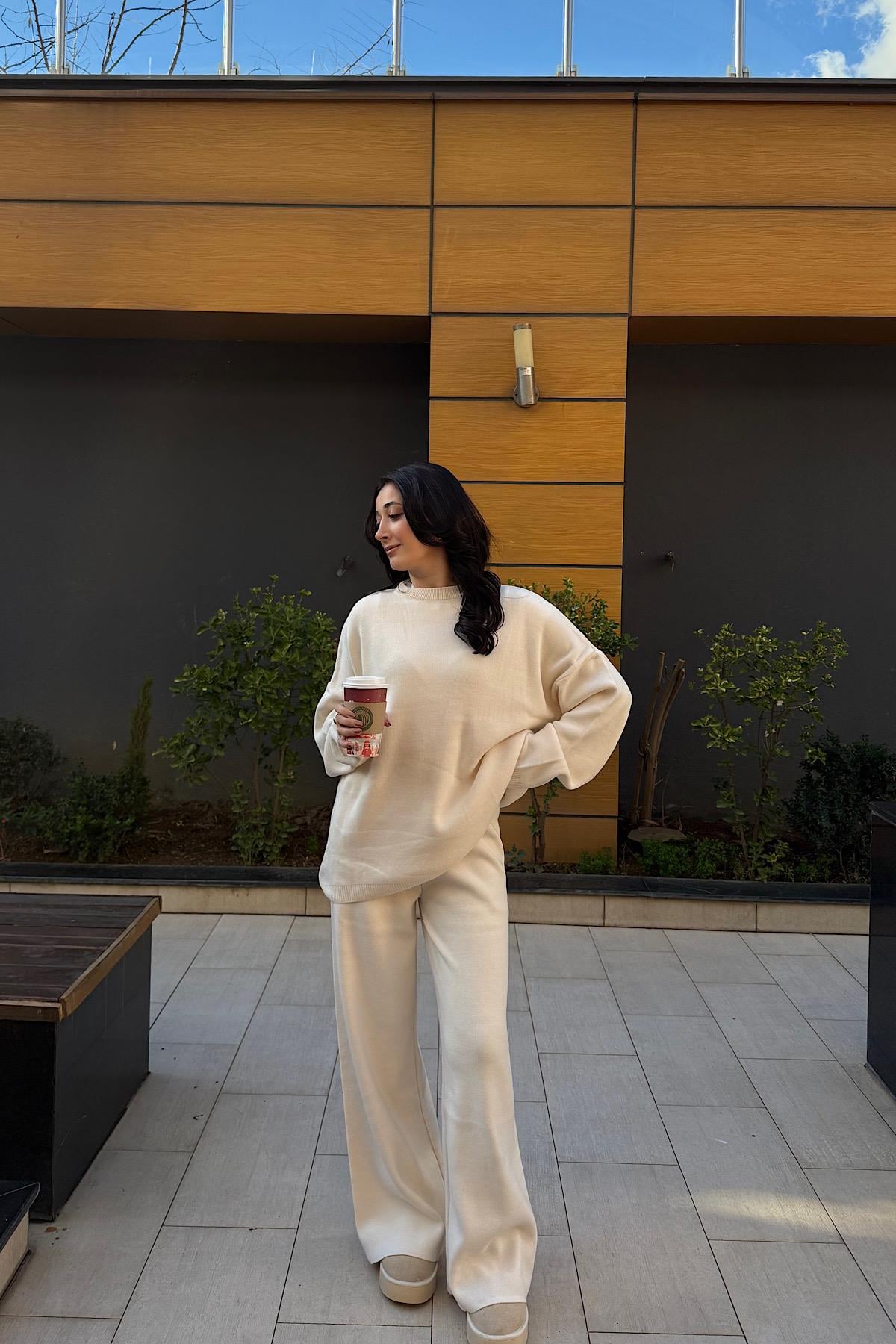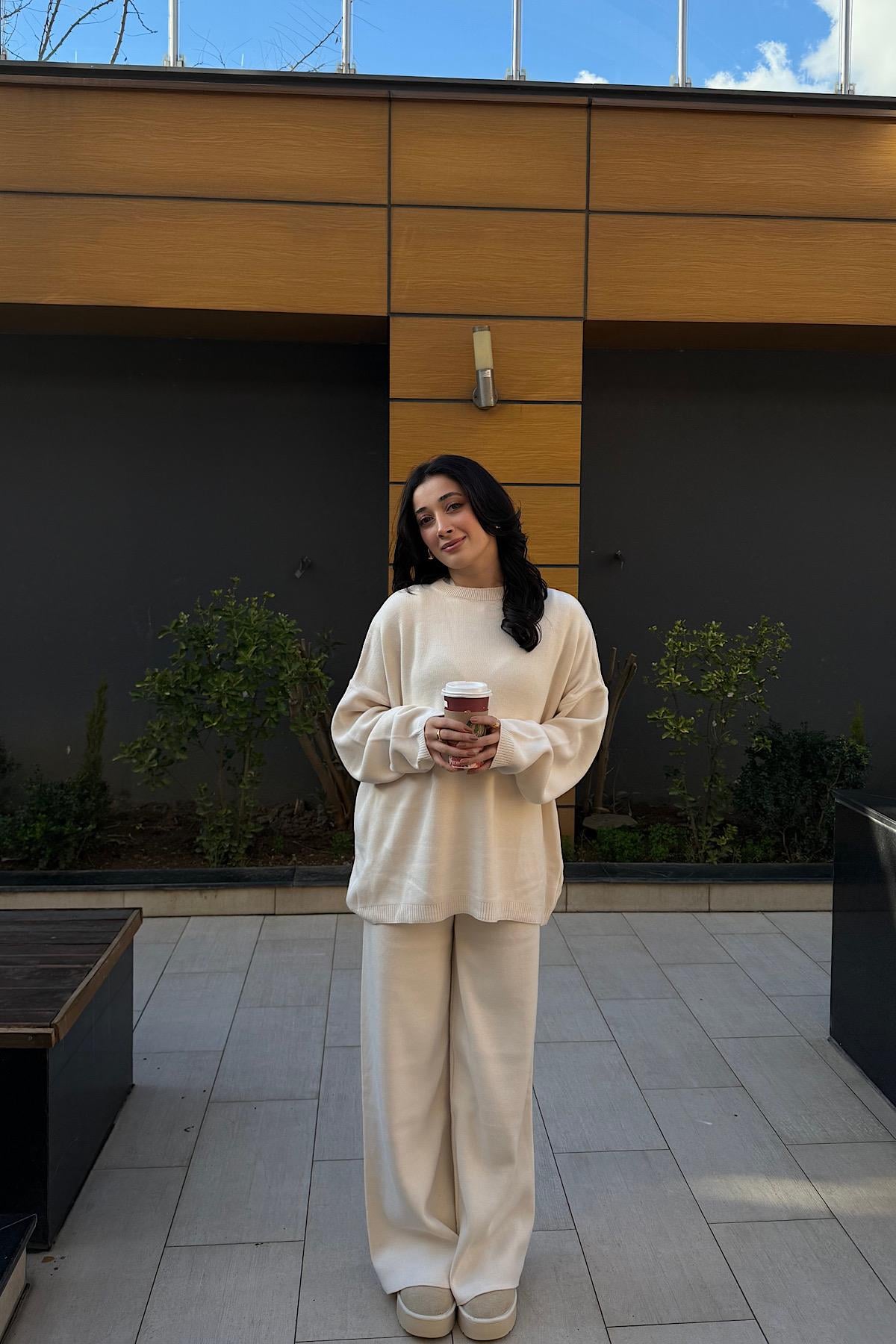 OVERSİZE TRİKO TAKIM-Ekru