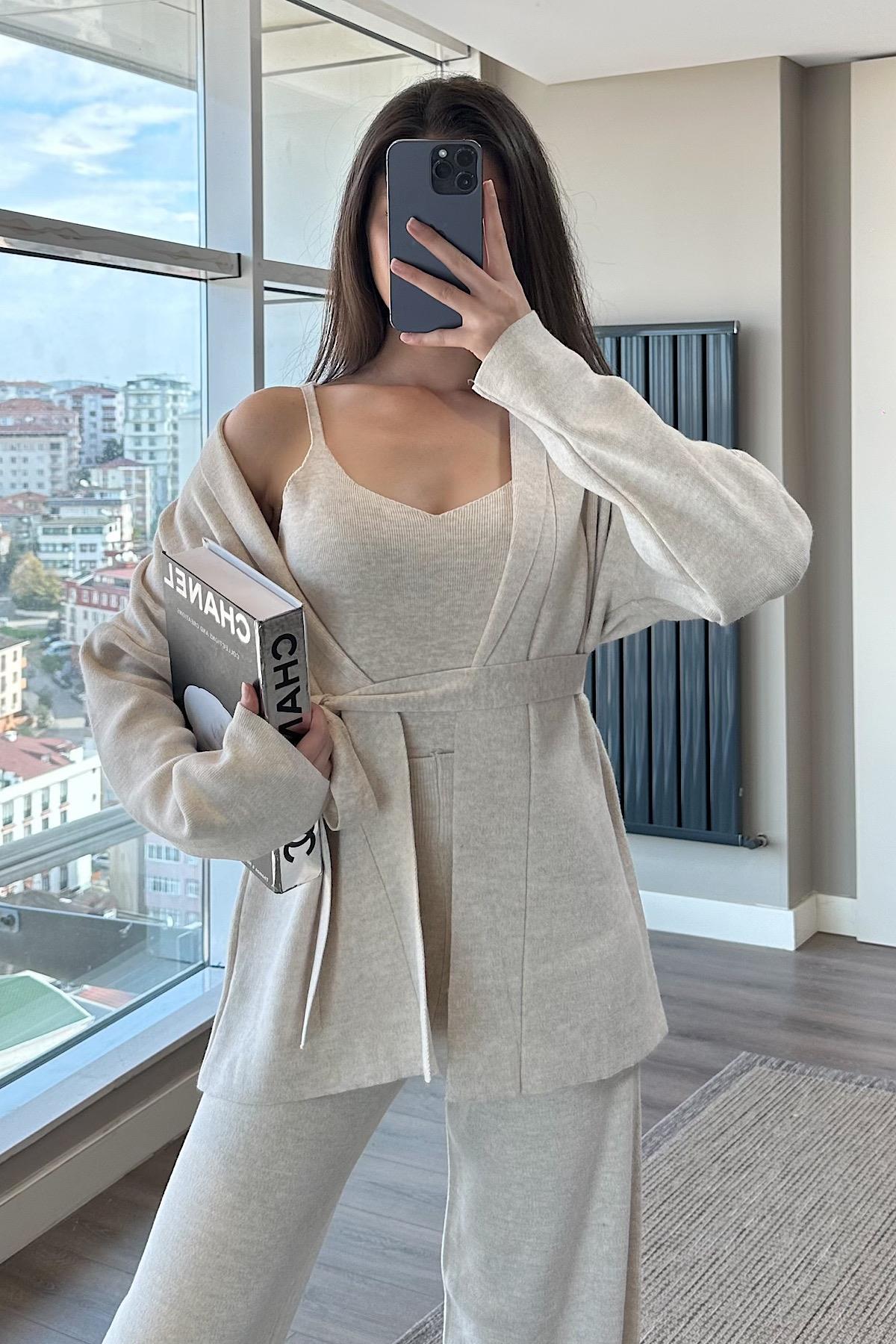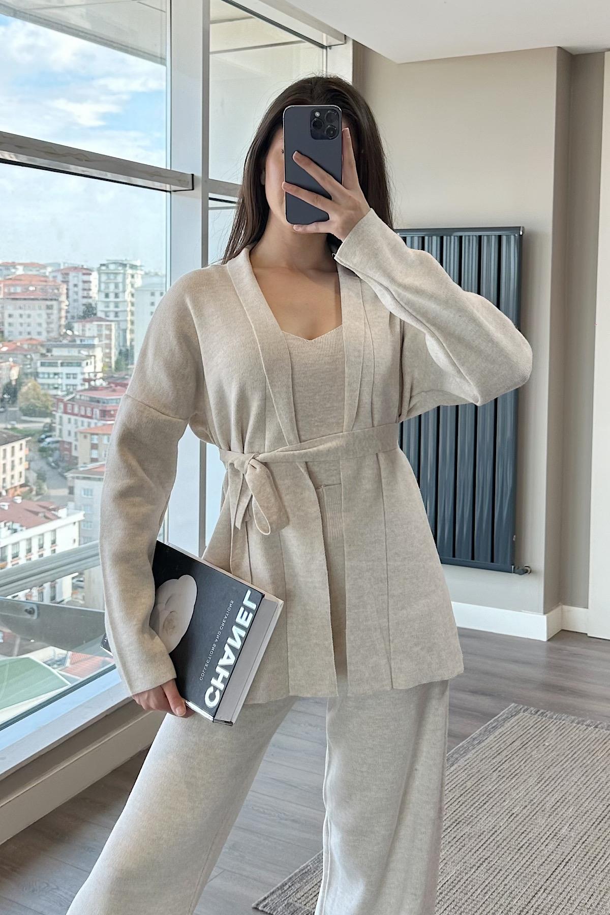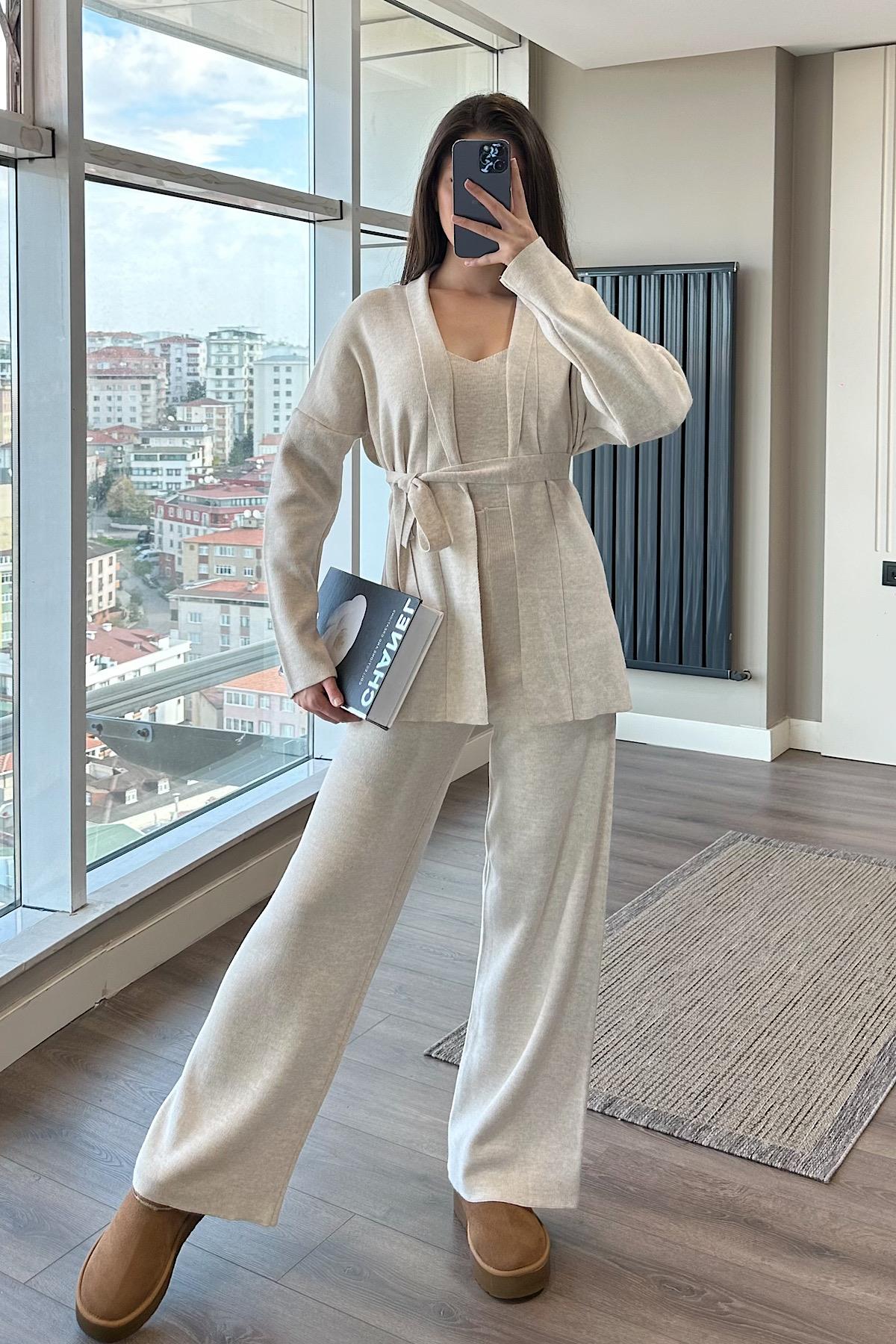ÜÇLÜ TRİKO TAKIM - bej